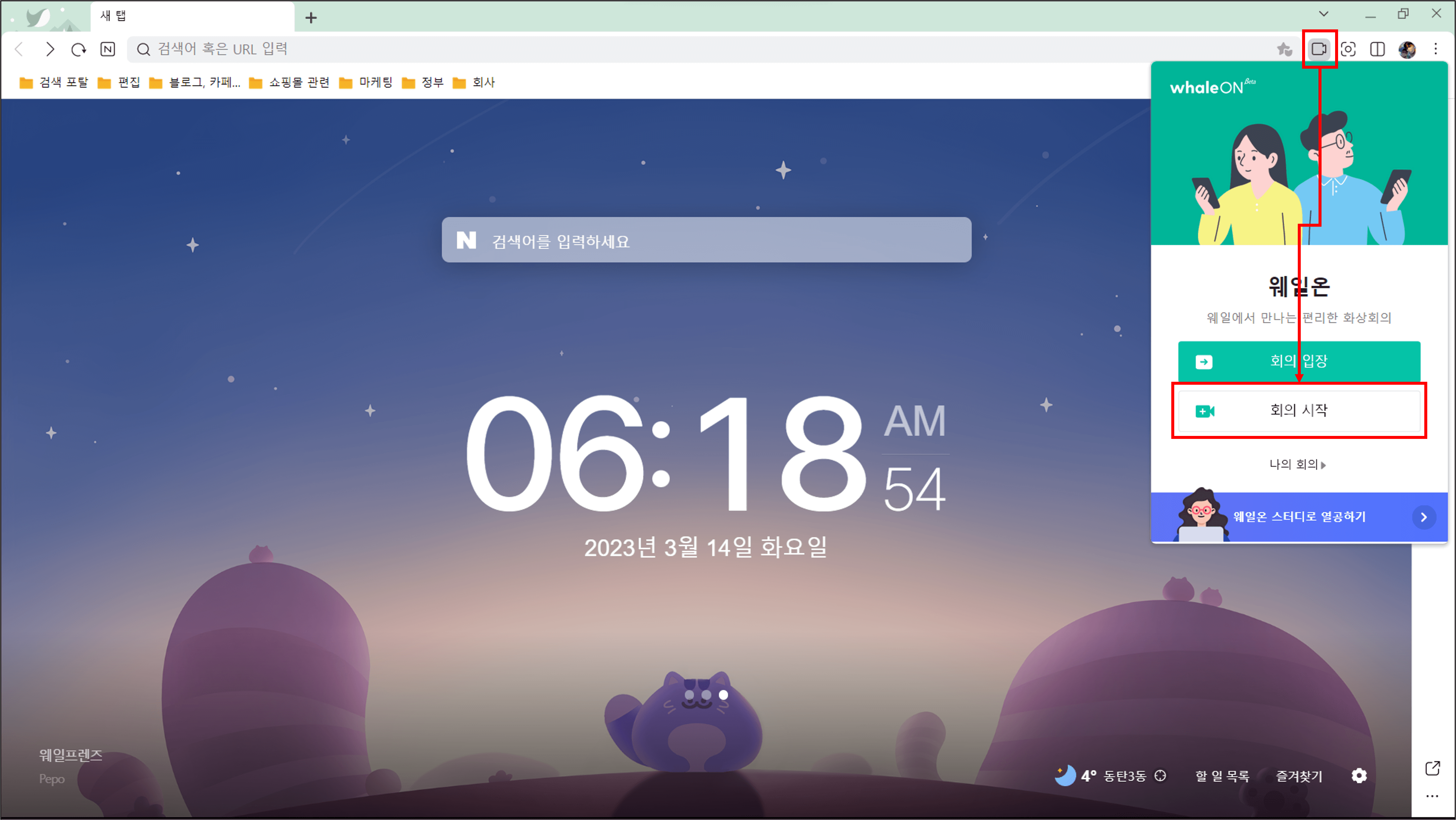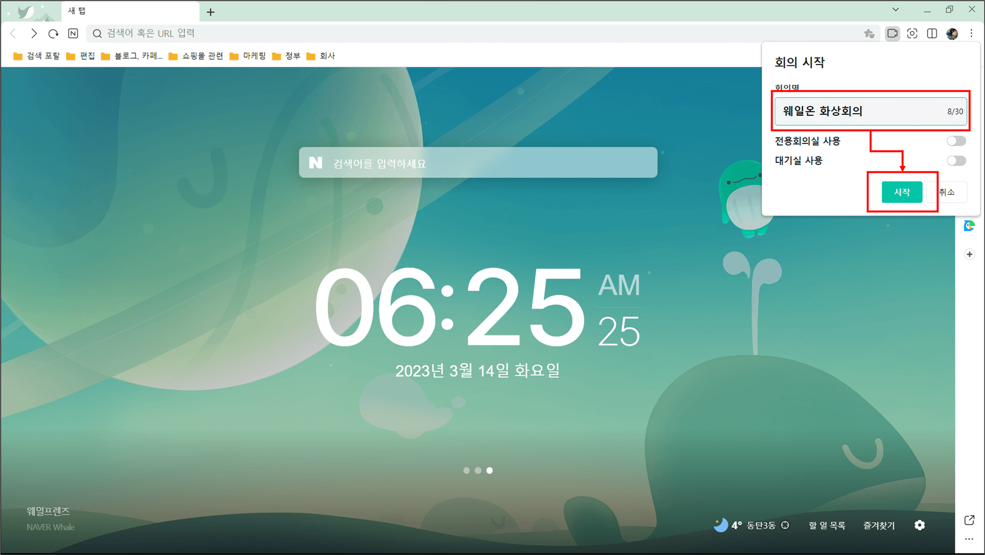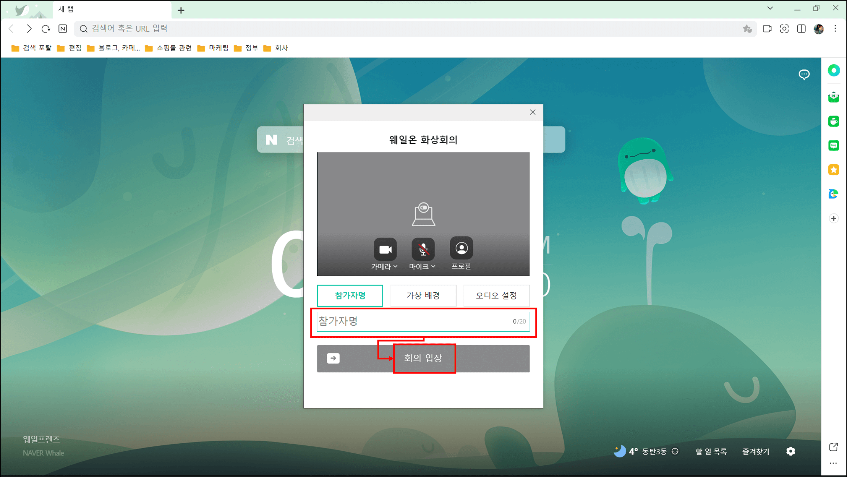 - 경로 2. 웨일 웹브라우저 웨일온 실행 ➜ 회의 입장